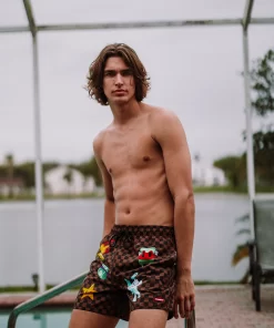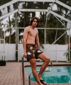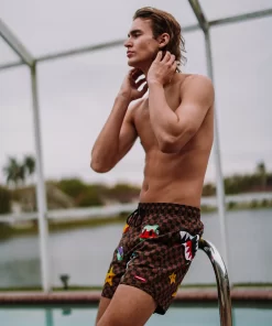 Details:4 way stretch fabric swimsuitSide pocketsBranded elastic waistbandInner perforated fabric for comfort and supportBack pocket with flap