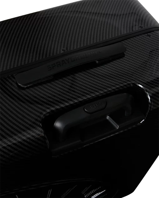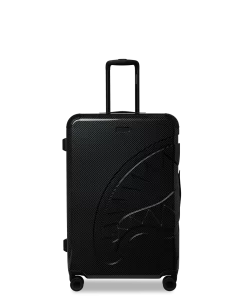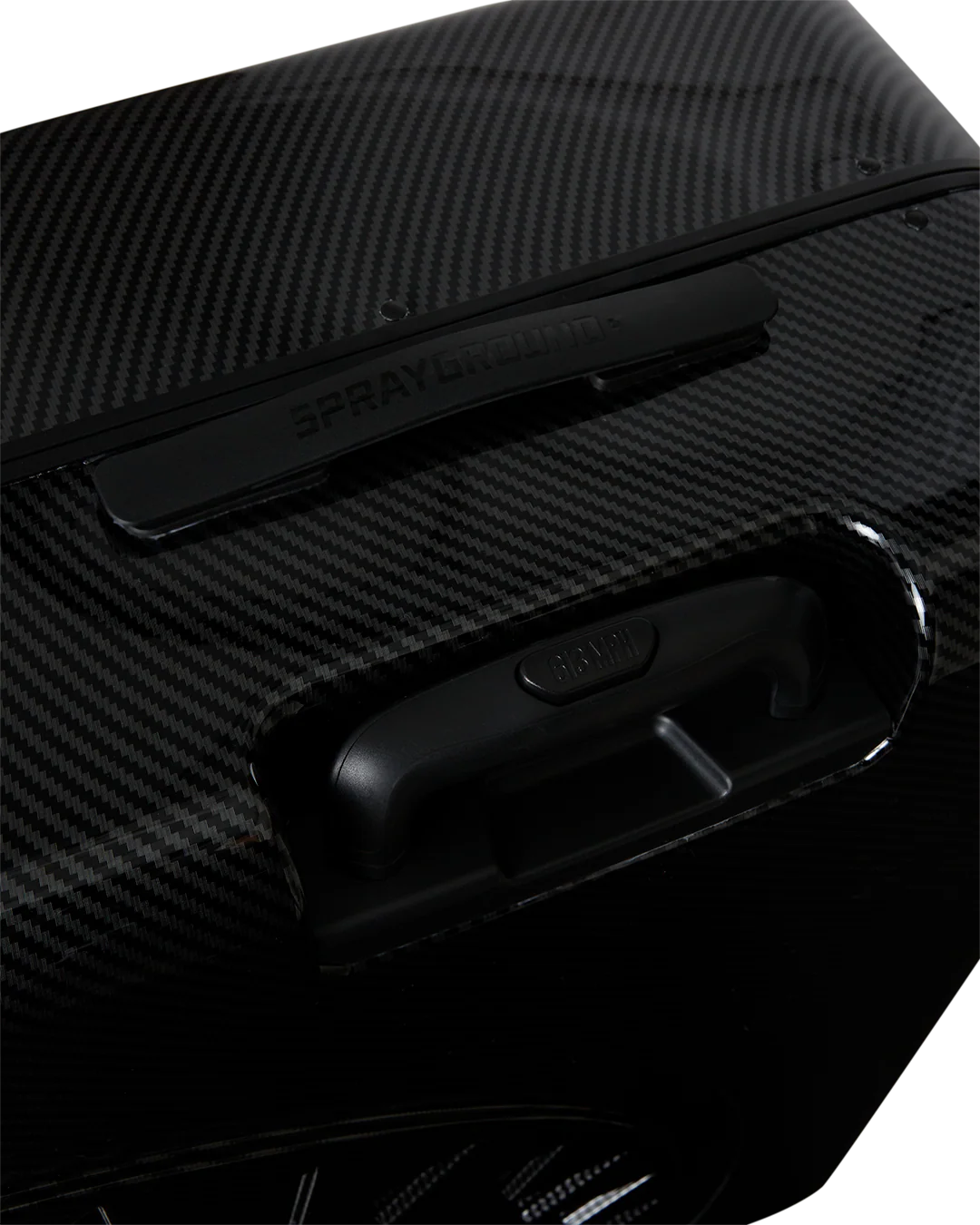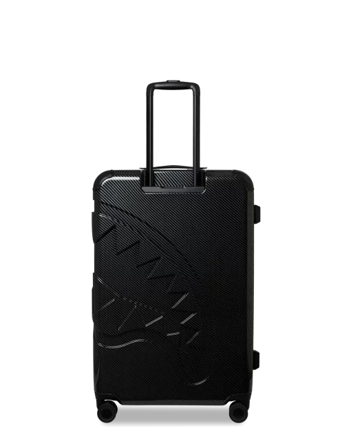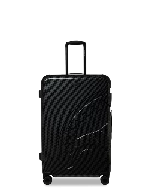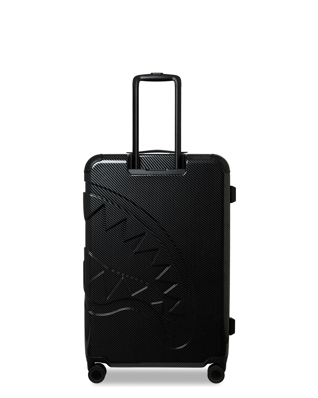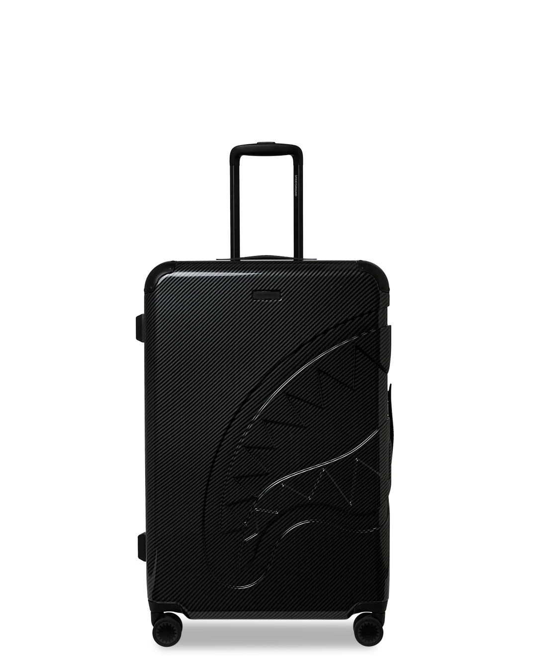 Faux carbon fiber full size luggage. Features an embossed shark mouth.