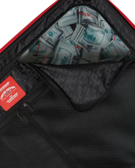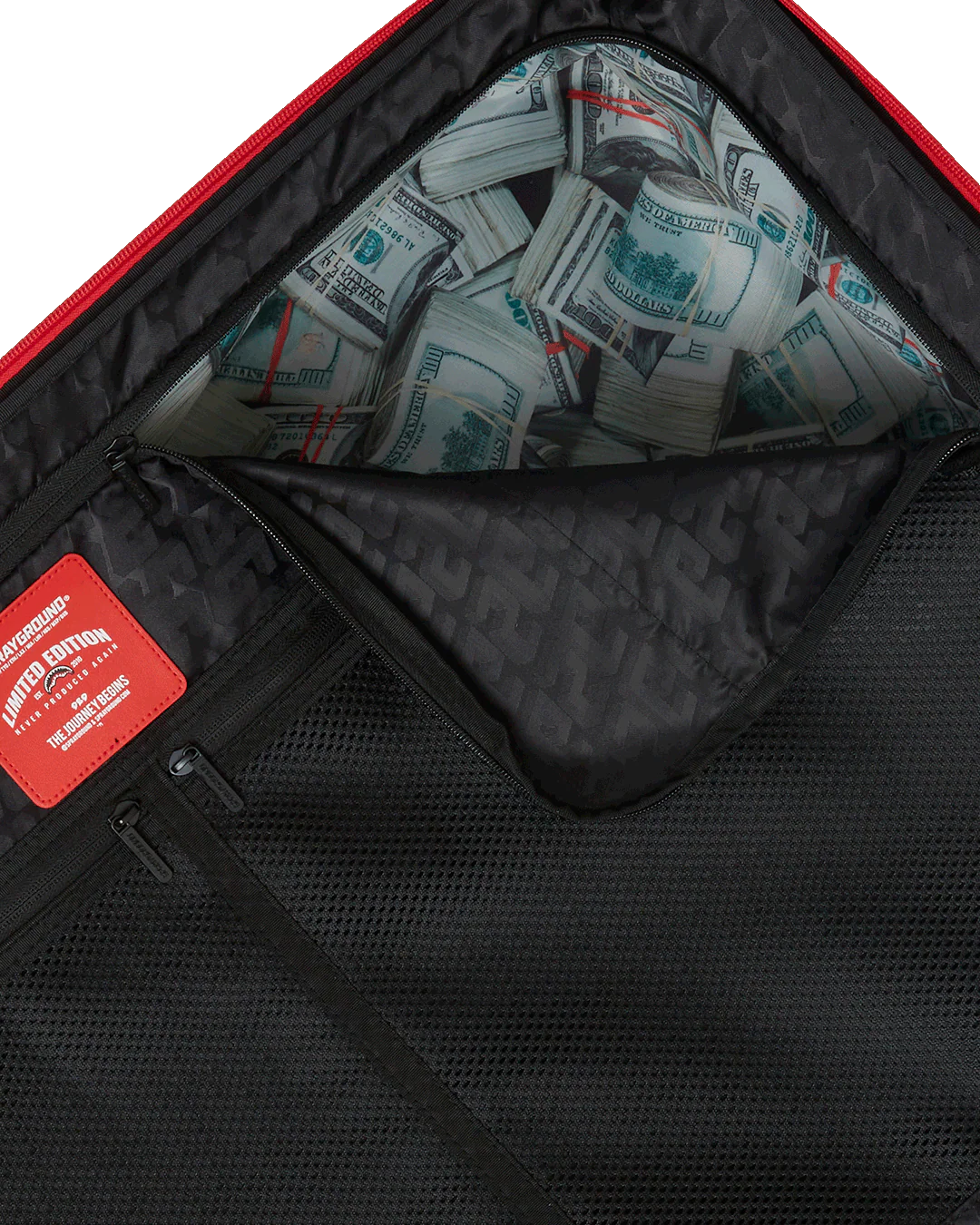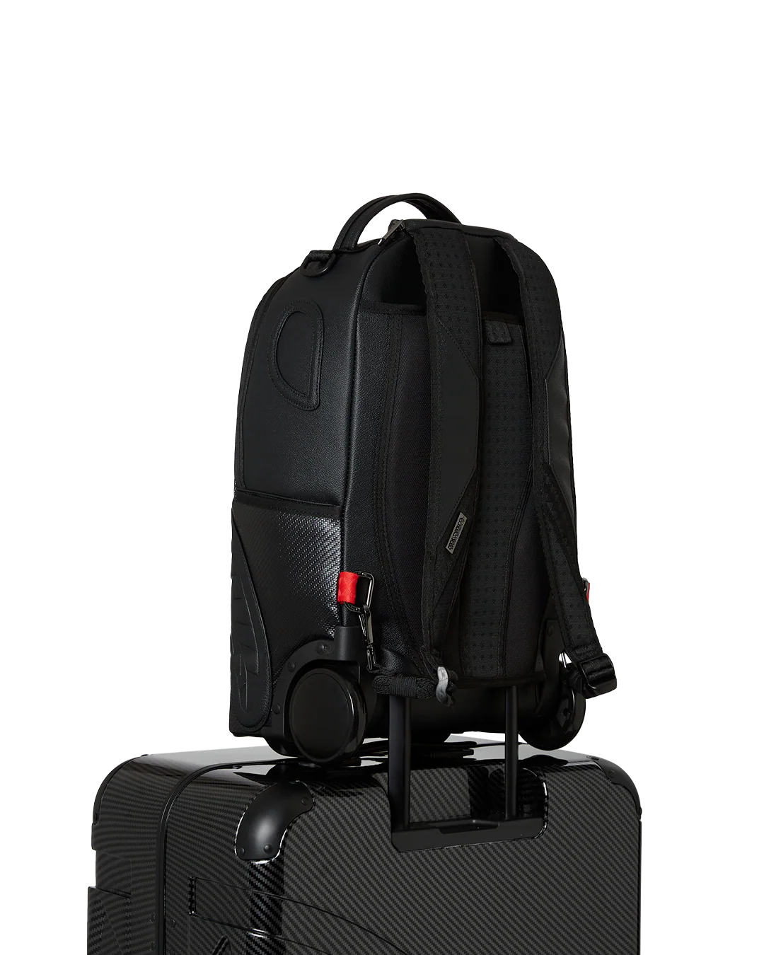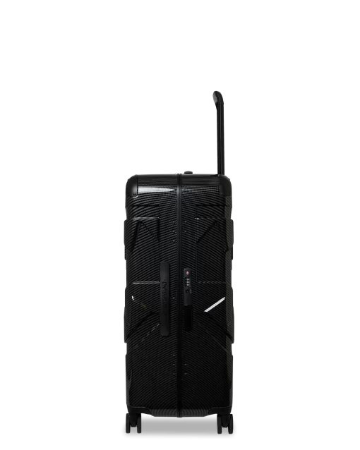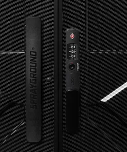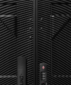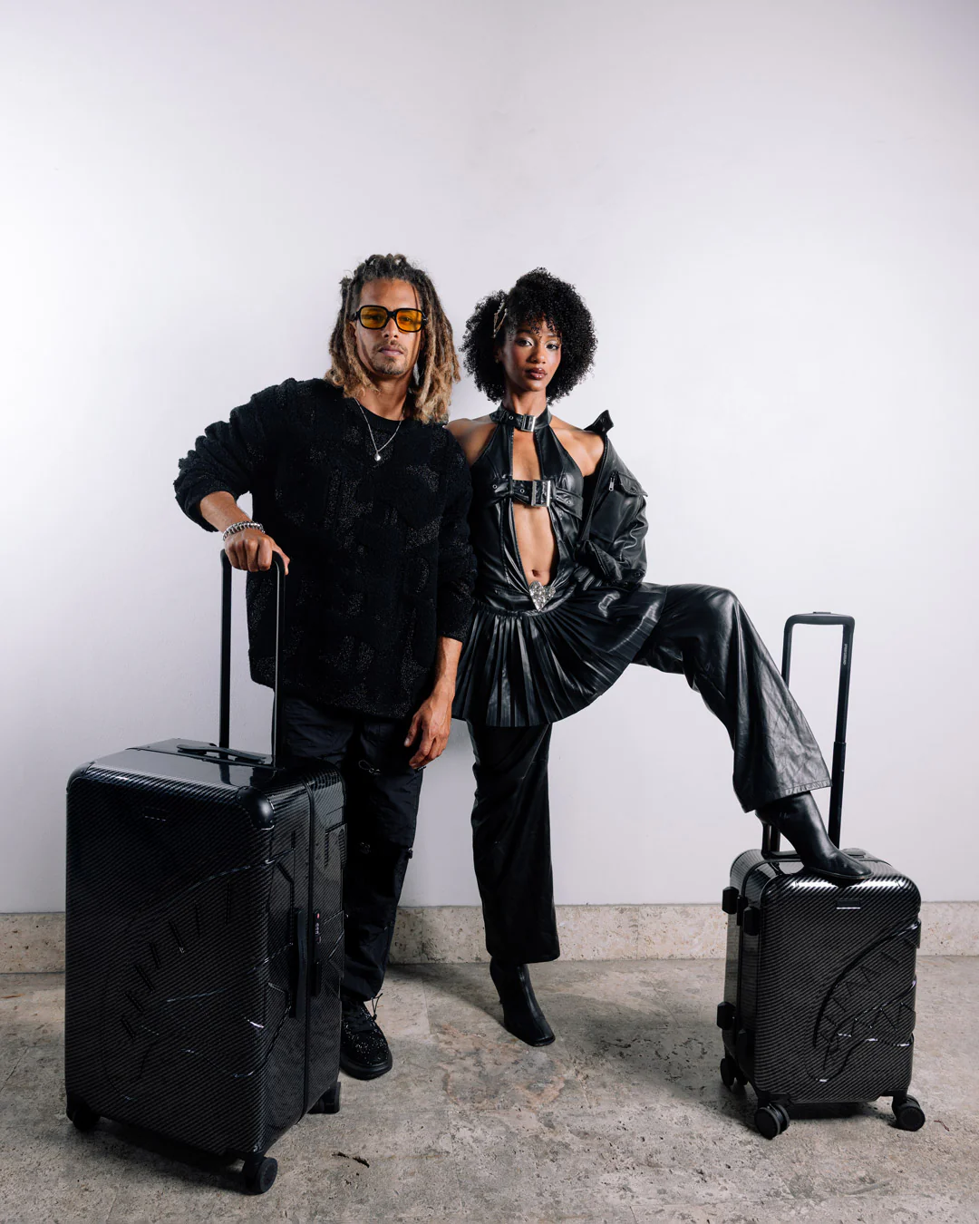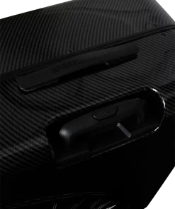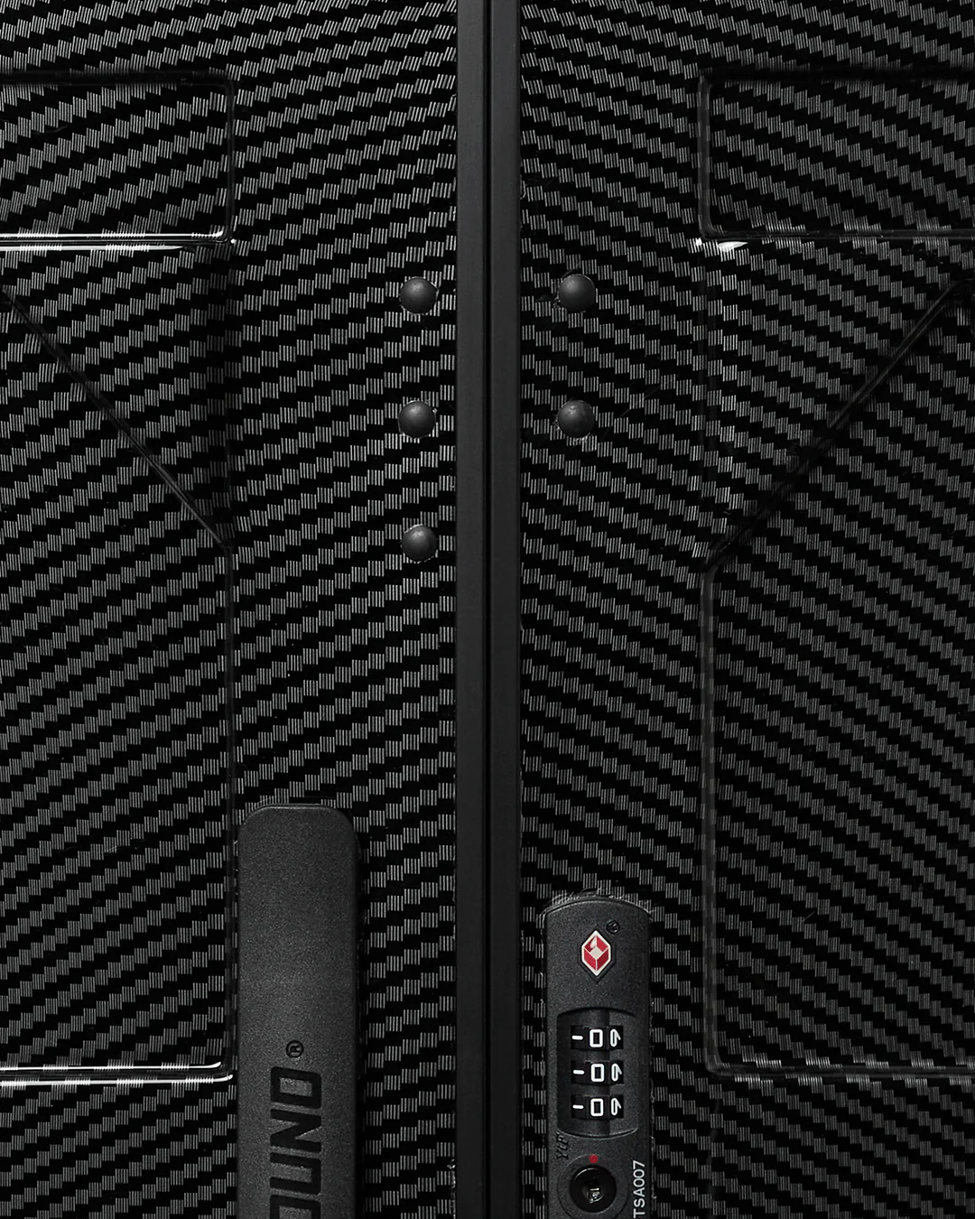 Faux carbon fiber full size luggage. Features an embossed shark mouth.