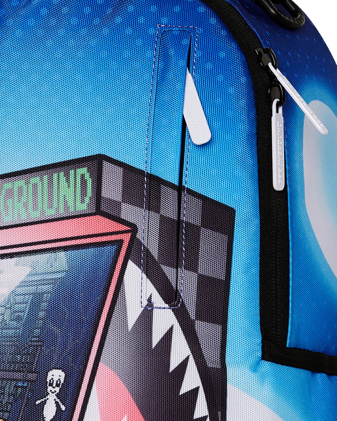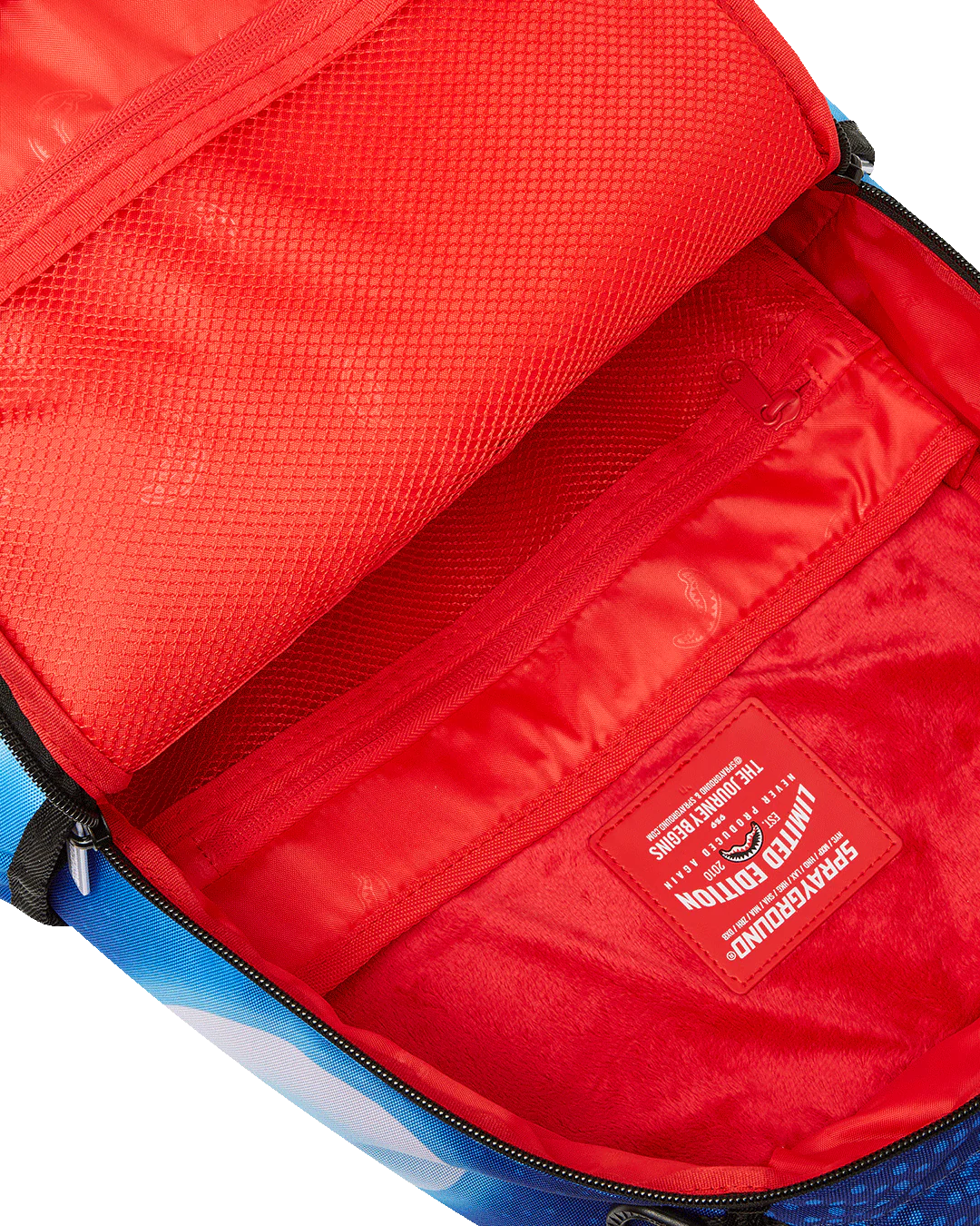 Dimensions: 18″ x 6″ x 11.5″ • Front zipper pocket • Side pockets • Zippered Stash pocket • Separate velour sunglass compartment • Ergonomic mesh back padding • Adjustable Straps for custom sizing • Gold zippers with metal hardware • Metal “Sprayground Authentic” badge • Slide through back sleeve connects to carry-on luggage to free your hands
