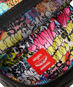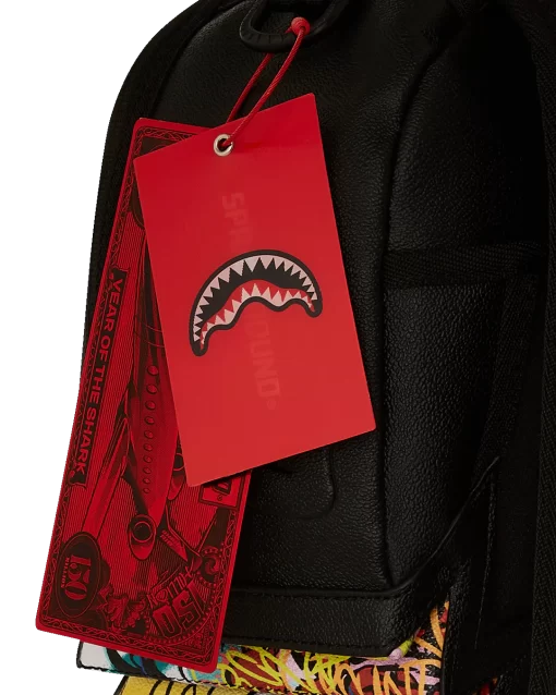 Dimensions: 18″ x 6″ x 11.5″ • Front zipper pocket • Side pockets • Zippered Stash pocket • Separate velour sunglass compartment • Ergonomic mesh back padding • Adjustable Straps for custom sizing • Gold zippers with metal hardware • Metal “Sprayground Authentic” badge • Slide through back sleeve connects to carry-on luggage to free your hands