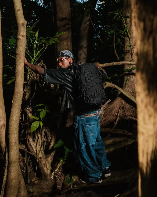 Dimensions: 18″ x 6″ x 11.5″ • Front zipper pocket • Side pockets • Zippered Stash pocket • Separate velour sunglass compartment • Ergonomic mesh back padding • Adjustable Straps for custom sizing • Gold zippers with metal hardware • Metal “Sprayground Authentic” badge • Slide through back sleeve connects to carry-on luggage to free your hands