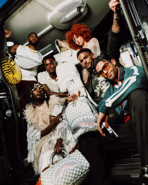 100% Polyester fly knit in our signature sharks in Paris check pattern & sharkmouth