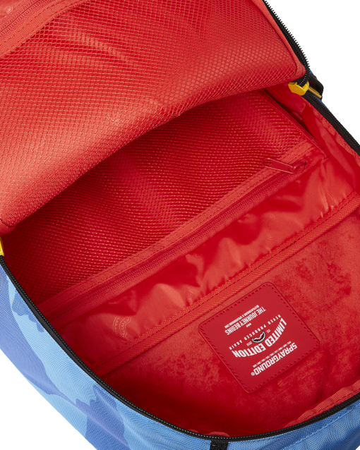 Dimensions: 18″ x 6″ x 11.5″ • Front zipper pocket • Side pockets • Zippered Stash pocket • Separate velour sunglass compartment • Ergonomic mesh back padding • Adjustable Straps for custom sizing • Gold zippers with metal hardware • Metal “Sprayground Authentic” badge • Slide through back sleeve connects to carry-on luggage to free your hands